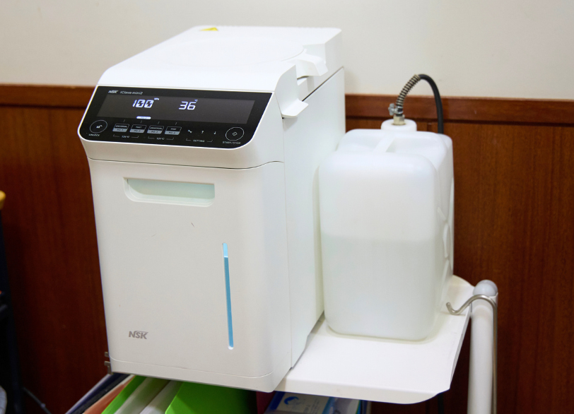 世界最高基準の「クラスB滅菌器」や、歯を削るドリル(タービン)を患者様ごとに交換・滅菌するシステム(iClave / iCare)の導入は、その一環です。